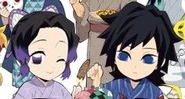 Shinobu, la Pilar de los Insectos, se introdujo por primera vez durante el Arco de la Montaña Natagumo con Giyuu, el Pilar del Agua. Ella dice que últimamente están constantemente en misiones conjuntas y deberían desarrollar una buena relación. Sin embargo, Giyu responde que su única preocupación es matar demonios.