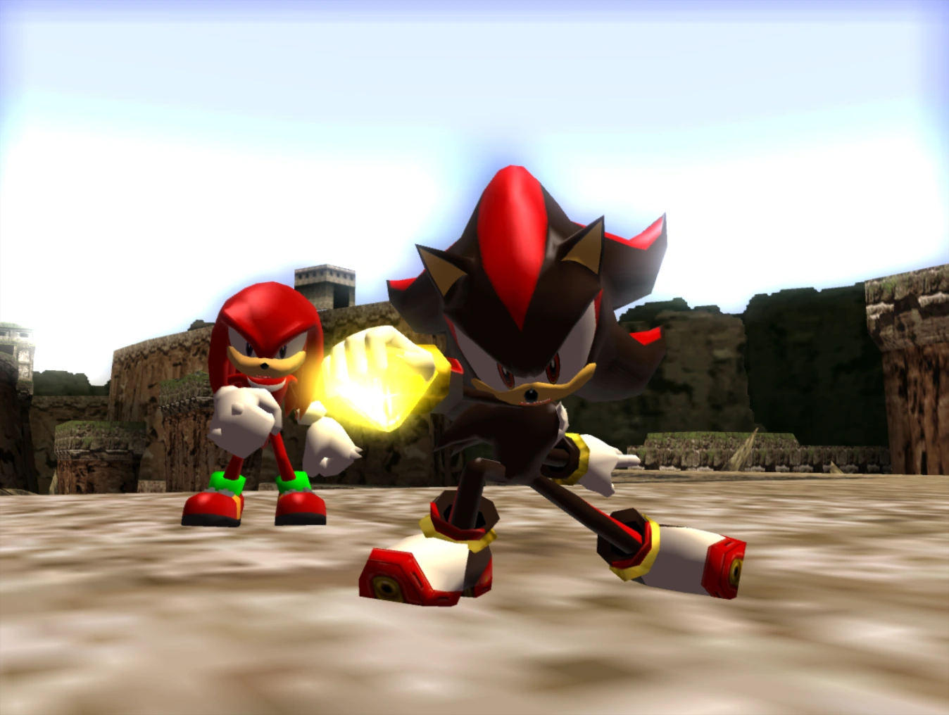 Empezaron como enemigos indirectos en Sonic Adventure 2, ya que Shadow se hizo pasar por Sonic y lo encarceló en la Prision Island, además de estar asociado con su archirrival, Rouge. Hacia el final del juego, se convirtieron en aliados cuando tuvieron que salvar el planeta del impacto de la Colonia Espacial ARK y la amenaza del Biolizard.