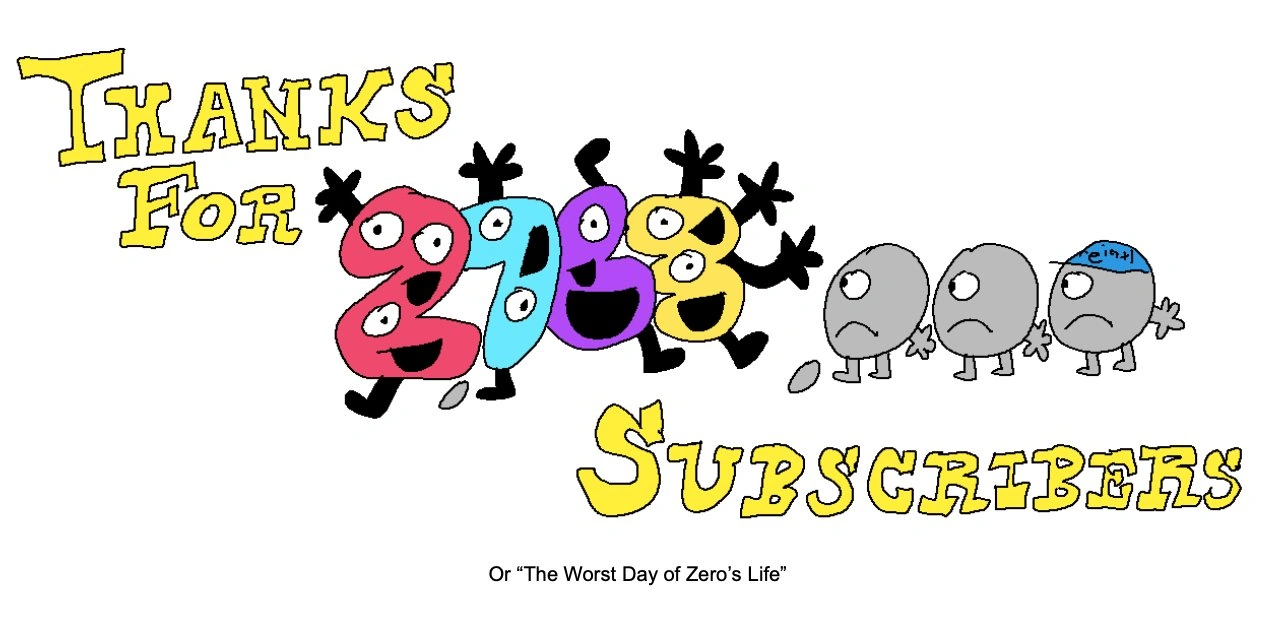 In "Thank s for 2,763,000", The zeroes are first seen running away from 2763. They run through their base and into the bunker, with Zero 1 having a box of tapes which presumably has one to get rid of them. Once Six finds their way into the bunker, Zero is happily shocked to see that they survived it. Six asks what his plan is, as it seems like they are just going to sit and hide. They remind them that their world is being destroyed by 2763. Zero is offended that they assumed he didn't know that. He runs into a different room, telling Six he knows more about it more than anyone else. He shows Six his box of tapes, telling him it's the key to get rid of them. Zero heavily dislikes rummaging back through the tapes, as their is tons of embarrassing footage. He does remember that there is a tape that is a manual about 2763. Though, the tapes are unlabelled. Zero becomes angered once realizing people just care about watching the embarrassing tapes. Later, Zero realizes that 2763, is trying to burn them alive inside the bunker, by flooding it with lava. Though, once they lock him in a closet and watch his most embarrassing tapes, he breaks the TV. Five and Zero go into a arguing match, as on one hand, the tape on to defeat 2763, could have been the next one. On the other hand though, if the others listened, they could have already seen that tape. It turns out Seven stoke the tape, which was labeled. So they go into the base to watch it. 2763 sees Seven and everyone's heat, so he kidnap a everyone except The Zeroes. Zero is glad that he missed him, but 2763 confirms that he didn't even need him to begin with.