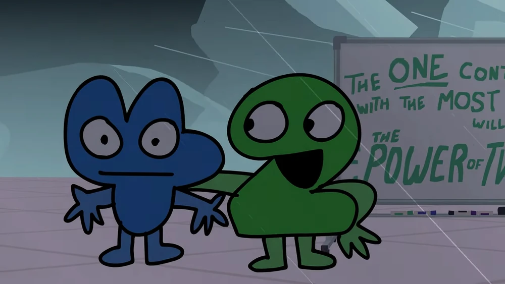 Throughout Battle for BFB, Four is constantly reminded of what Two has done to his show, causing him to get angered at the thought. Some instances for example being when Four needs to split up his contestants into two teams, when team Have Nots are put up for elimination for the second time in a row or when he needs to refer to how much time the contestants have left for the challenge, that always being two. In BFB's finale, "Chapter Complete", after Four goes up to space and becomes the sun, Clock runs over to Two, reminds them that they are probably more powerful than Four and tells them his concern over it. However, Two seems pretty nonchalant about the entire situation and denies that they are actually stronger, seemingly wanting to stay out of it.