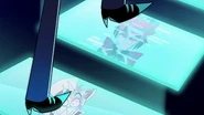 Lucifer and Vox are also enemies, though their interactions are limited. When Lucifer went to confront Vox for badmouthing Charlie, Vox successfully humiliated the King of Hell in public, leveraging the knowledge that Lucifer cannot physically harm a Sinner due to a divine punishment. This confrontation established Vox's willingness to challenge the King's authority. Their conflict peaked when Vox successfully tricked and kidnapped Lucifer, utilizing angelic cuffs to siphon his angelic power as a source for his massive weapon. The only canonical scene where all three characters were present occurred during Lucifer's kidnapping, where Vox, having successfully trapped Lucifer using a voice recording of Charlie, stood triumphant over both the captive King of Hell and the bound Radio Demon, relishing his temporary victory over his two most significant enemies while Lucifer and Alastor immediately began bickering with each other from their restraints.