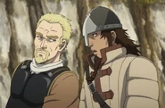 At the beginning of the series, the two of them are shown taking on the task of ambushing Thors after being hired by Floki. Bjorn is shown to be extremely loyal to Askeladd. After the latter loses to Thors in a duel, Bjorn wakes up after being knocked out by Thors. He jumps onto Thors' ship and holds Thorfinn at knifepoint. This causes Thors to throw his sword away, with the assurance of his son and the rest of the crew making it out alive.