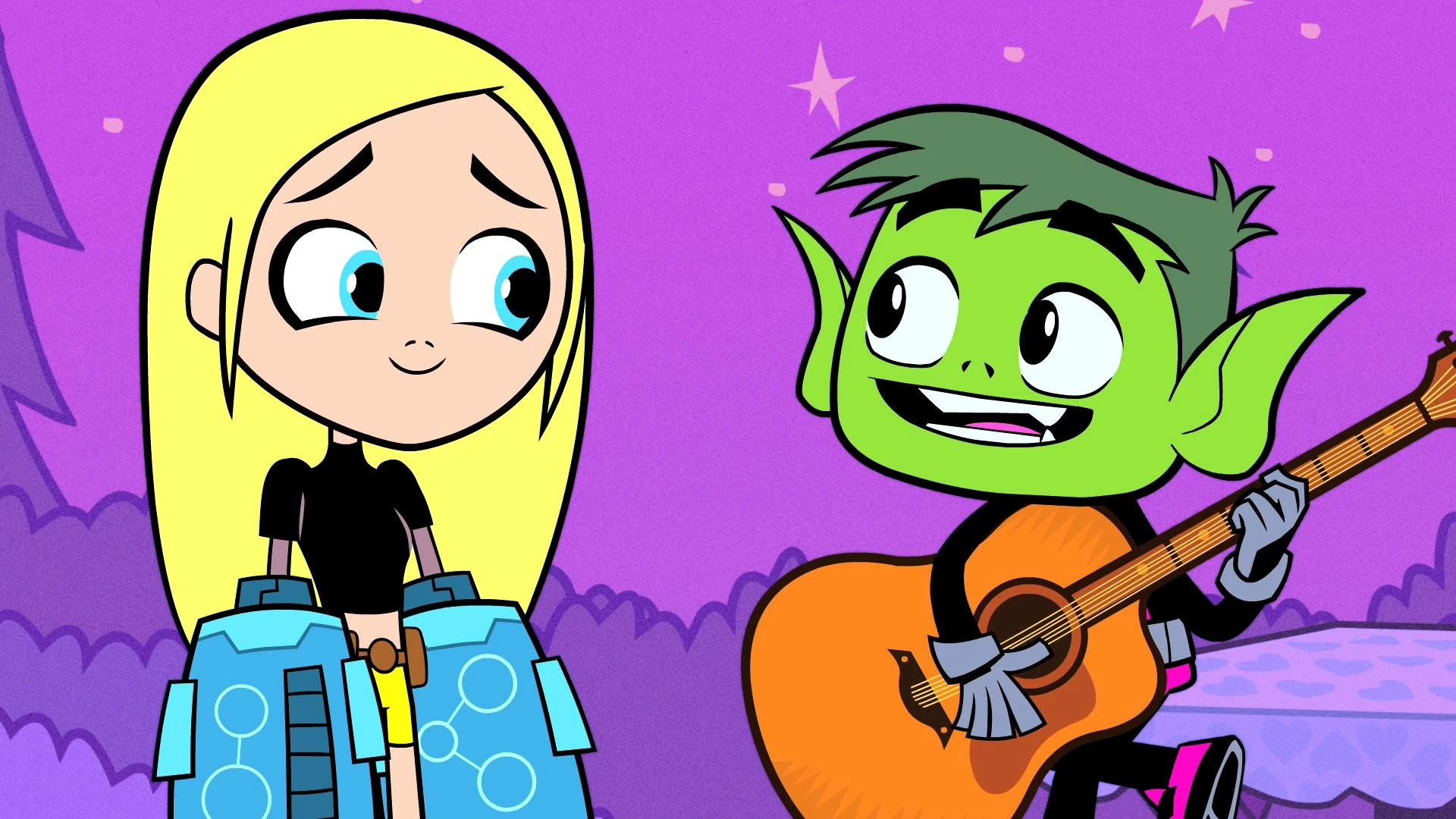 Terra first appears fighting a giant scorpion. There, she meets Beast Boy who arrives with the rest of the Teen Titans to lend her some help. However, Terra squashes the creature with her earth powers, which leads to her being invited to the Teen Titans house. As soon as she starts getting more and more comfortable around the Teen Titans, who even consider she'd be a great addition to the team, Beast Boy starts showing more interest in her than anyone else. However, Robin is a bit hesitant to let her join just like that, so he decides to test her abilities, after a night of rest. Terra wasn't resting, though, as she was listening in on the conversation, while pretending to be asleep, which upsets her. Beast Boy later in the night goes to check on her, only to find her missing. Later, he finds Terra outside, skipping rocks in the water. The both of them share a very intimate conversation, where Beast Boy convinces Terra to stay. Terra, on the other hand, is very conflicted about this since she confesses her insecurities to Beast Boy about not being able to control her powers very well, which has led to her hurting people she loves in the past. Beast Boy promises to keep this secret in between them, which bonds the two together even further.