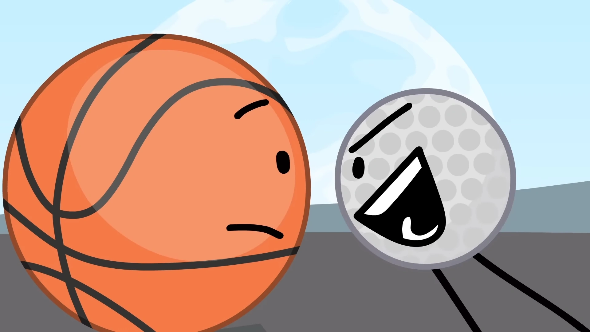 During team forming in The Power of Two, Golf Ball reluctantly accepts when Basketball asks to join her team. When the team becomes full, Golf Ball complains that it has too many useless people in it. Basketball is offended by this and walks away to form up a different team. Golf Ball is unbothered by her departure, instead happy that the team has a free slot so TV can join. Basketball walks away with Grassy and Robot Flower, the latter complimenting Basketball on how she was able to stand up to Golf Ball. After Basketball realizes that Snowball must join her team as he is the last one to be picked, Golf Ball laughs at her face and says she's stuck with Snowball. Basketball growls back at her.