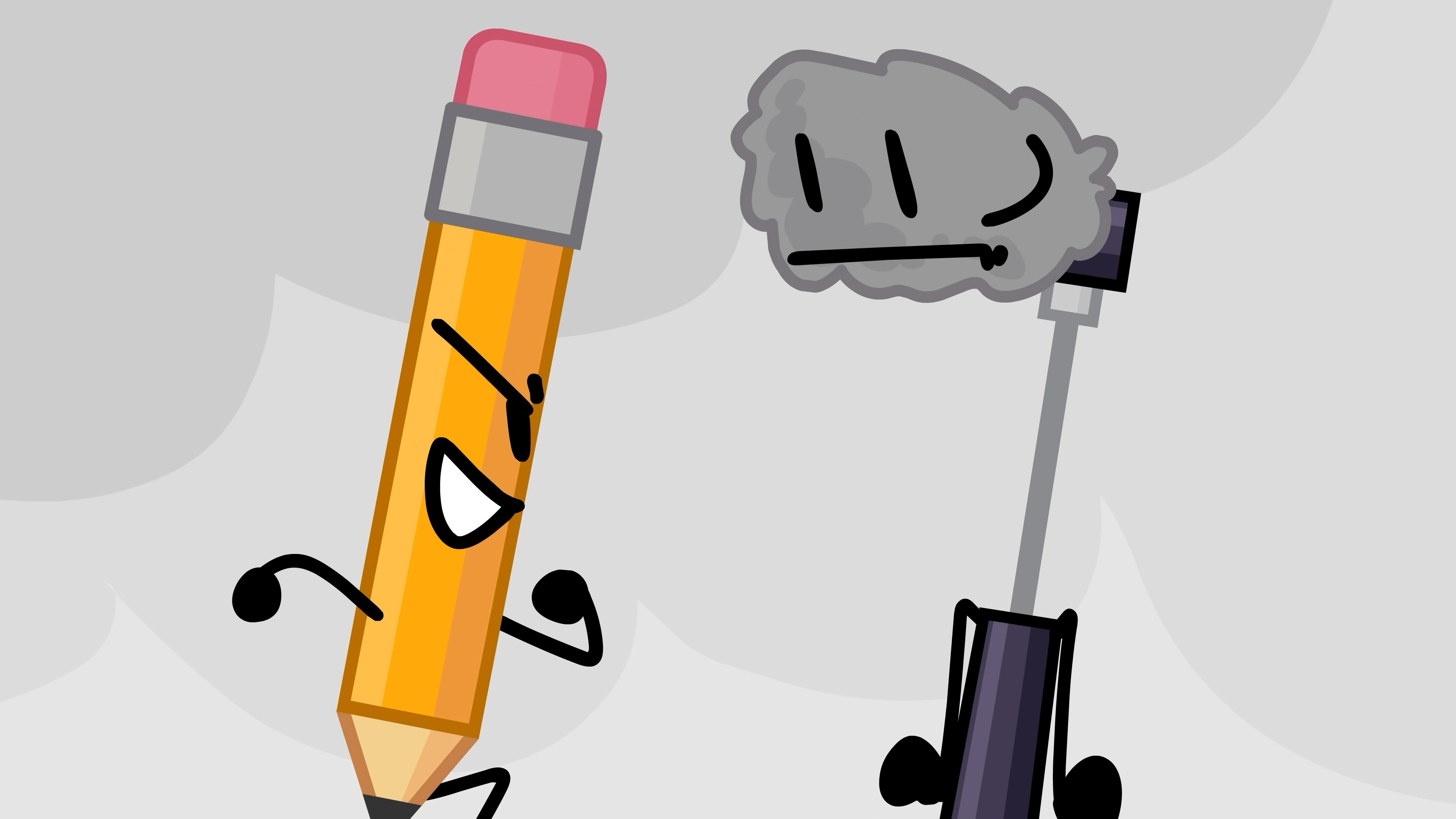 With the teams being tasked to go back in time and retrieve the failed debuters, Pencil's team, CloudYAY, is sent to retrieve Boom Mic who is stuck in a BFDI Mini episode. However, Pencil disrupts the visual setup of the show and causes the BFDI Mini contestants to start attacking the team. While this unfolds, Boom Mic sneaks away and climbs up the Eiffel Tower, the original challenge given to the contestants. While fighting with Glue, Pencil eventually spots Boom Mic during the fight, prompting her to kick Glue away. Pencil then angrily calls out for a startled Boom Mic and starts chasing after her. Golf Ball orders Pencil to get her, warning that they shouldn't mess with the past with the risk of the consequences coming back to get them. Pencil brushes this aside as she starts climbing up after Boom Mic.