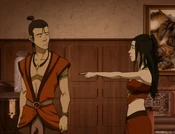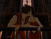 Azula and her group show up right at sundown. Chan is not ready yet, but still invites them to come in. Eventually, Azula becomes jealous of seeing so many men flirt with Ty Lee. She decides to try flirting with Chan, although her compliment comes off a bit too strong. Chan seems somewhat uncomfortable, and they part ways. Azula then seeks flirting advice from Ty Lee so that she can try again.