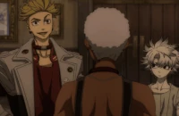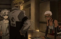 Semiu begins giving an overview of a job, during which Rudo asks what a polluted zone is. Semiu quickly realizes Enjin hasn’t taught him properly about terminology. Enjin, smiling insists that he did explain it referring to it as garbage dump sites. Semiu falls silent for a moment, then calls Enjin a half wit for not doing his job. Enjin looks genuinely shocked by the insult. Semiu reflects on how it was a miracle that Enjin even managed to find Rudo in No Man’s Land, and she asks what he was doing there in the first place. Enjin casually replies that he was just taking a walk and brushes it off as it is his business. Semiu responds with a skeptical, “A walk...?”