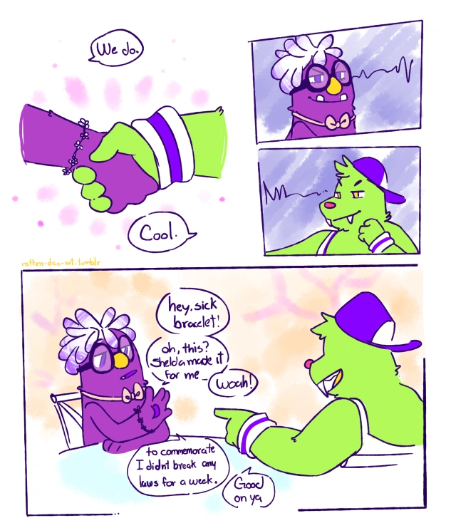 Chandlo asks Floofty to speak with him about Snorpy, asking them about their childhood and about what happened between the siblings. Chandlo confesses that, while Snorpy told him some of what happened, he's always wanted to hear Floofty's side of the story. He also, tentatively, tells them that Snorpy doesn't like him speaking to them, to which Floofty reveals that they already knew that. Chandlo thanks Floofty after they explain the situation to him. Floofty expresses surprise at how their conversation turned out, having expected more "shouting and headlocks" from Chandlo. He tells them that things are cool between them, and admits they would like to speak to Floofty more, something Floofty entertains the idea of. It is later revealed that the two of them worked together to build an invention to aid Triffany's studies, Chandlo managing to convince Flooty to keep its name simple.