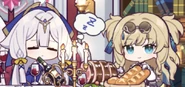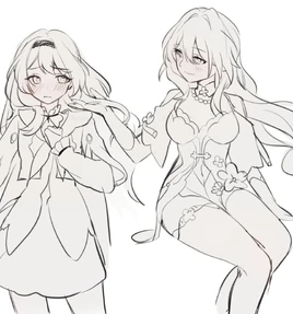 In Thelemas Roseate Summer outfit description Thelema asks Songque why she´s been avoiding eye contact with her and mumbling. Songque nervously replies by telling that she was thinking about the perfect thing to say to describe how she feels but everytime she thinks of something, she gets too embarassed to say it out loud. Thelema tells her that if she should say what she want to say quickly because the filming starts soon and that it will be to late by then. Songque then tells Thelema that the outfit looks good on her, so good, that she doesn´t know where to look. Thelema goes quiet and Songque asks why she won´t talk. She thinks that this is the first time that Thelema ever looked away from her. Thelema says that Songque told her exacly what she was going to say to her, and that there was no need for her to repeat it.