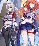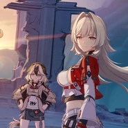 After Robin's trailer was released, players immediately noticed that in the scene of Robin eating chicken wings, she looked a lot like Kiana Kaslana, specifically Herrscher Of Finality. Players quickly went to social media, posting about how much Robin looked like Kiana. Fans were very excited by the trailer, feeling as thought it confirmation that Robin was the Kiana expy, and Acherobin was indeed a parallel to Kiamei and going to be "canon" in 2.2. Quite a few people also took a new interest in Acherobin, leaning into the belief that Robin was Acheron's Kiana, and thought the two to have a lot of potential.