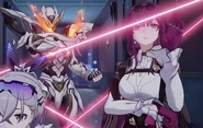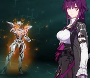 When Firefly next awoke she was also aboard the Stellaron Hunters' spaceship, likely being brought on by Kafka who was talking to her from a distance. Kafka stated that the Iron Cavalry was now destroyed and only rumors of the Iron Cavalry were left, going on to say that all the Iron Cavalries were genetically engineered babies carrying a genetic defect that will one day cause them to age quickly and then die, her footsteps and voice becoming clearer as she neared where Firefly was. The spaceship door opened as Kafka entered and stated that the predestined ending was very similar to the both of them, and flames danced on Firefly's body as her armor prepared to materialize and she asked Kafka who Kafka was. Kafka then smiled at Firefly as if they were "old friends reuniting again after a long time apart" and asked her if she believed in fate, the idea of how people who walk in the same direction will eventually meet one another, suggesting them meeting one another was fate, with Firefly then assumedly being recruited by Kafka.