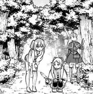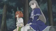 Though Lawine chides her, Frieren sits down on a log and asks if the party would like to take a break. Kanne is quick to sit down opposite Frieren but Lawine states that she isn't so tired as to need rest yet and decides to scout ahead. This incites another argument between her and Kanne, with Kanne saying they should stick together for safety and Lawine arguing it will be more time efficient if she goes ahead. Frieren asks Lawine whether she is powerful. Lawine quickly says that she is more powerful than Kanne, nearly causing another fight between the two, but Frieren interjects and asks Lawine if she is powerful compared to Frieren herself. This causes Lawine to grow serious and she tells Frieren that she would not want to fight her. Hearing this, Frieren tells her she is free to go scout, but to come back immediately if there is danger. Lawine responds dismissively to Frieren's warning, considering she was already aware of potential danger. Meanwhile, Kanne reacts with confusion.