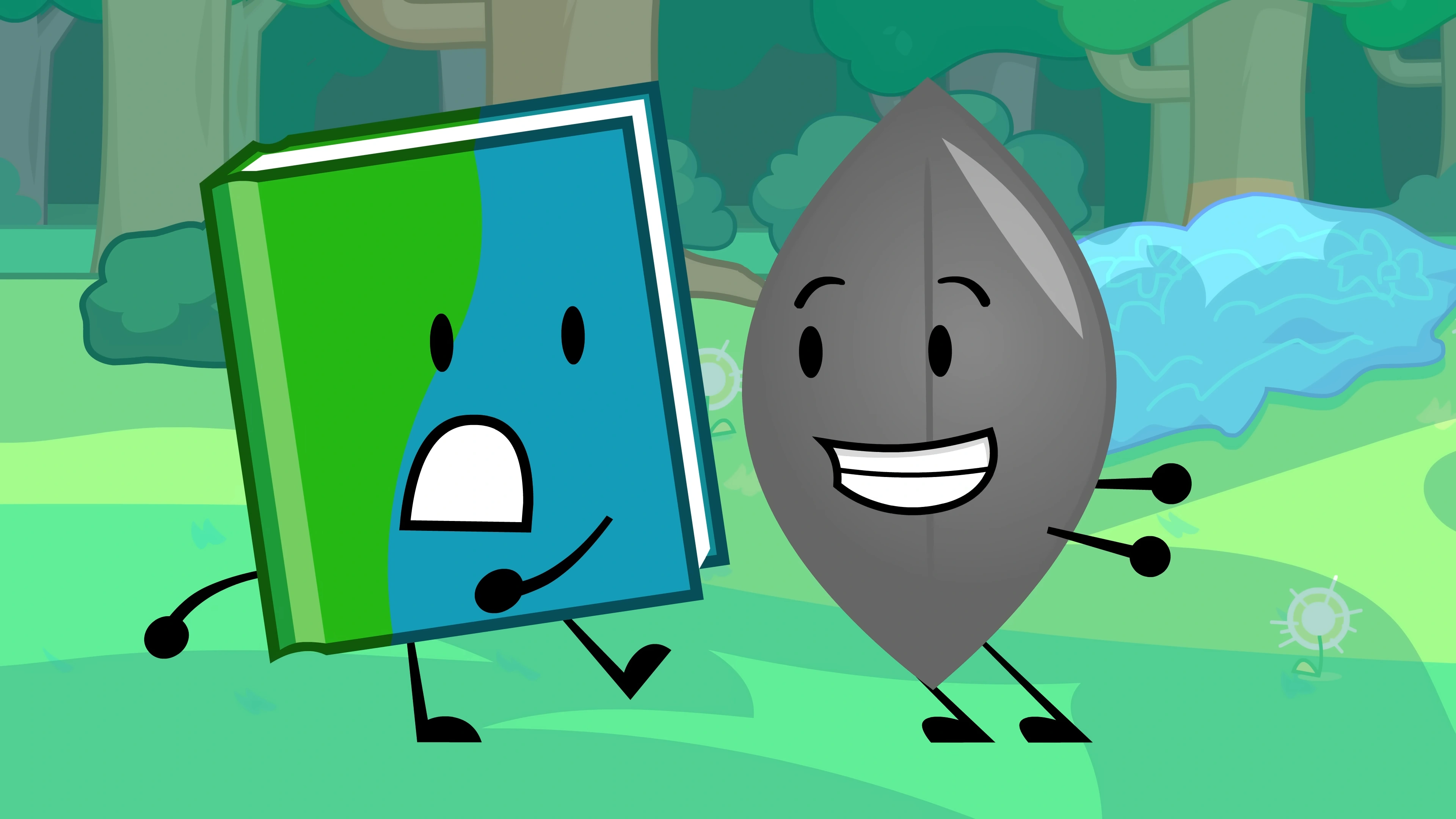 After Needle takes Leafy to the Evil Canyon, Leafy overhears music and Book informs her of the concert hall's performance happening right there. She takes Leafy to the watch the concert and sits next to her, asking if Leafy is enjoying it. Leafy says that she isn't a fan of the genre, making Book ask the director Pan Flute to play something else. Book forces him to do it after he refuses the first time and Leafy enjoys hearing the new song being performed. She then places a flag on stage for Book, where Book is tied with Coiny with having one flag so far. When Tennis Ball gets Leafy to ride with him in his new car, Book follows Coiny and Needle and chases after the two to get Leafy back. However, the group runs into a dilemma when a gap in the highway prevents them from crossing. Regardless, Leafy enjoys spending time with them during the night on the highway. After they use Woody to fill in the gap and drive off the highway, Leafy finds it harsh when Tennis Ball kicks Book, Needle, and Coiny off. Later when Needle and Book are figuring out where the others went, Book states that she is Leafy's diary and looks up where she could be. Finding that she's going to the junkyard with Tennis Ball, Book and Needle make their way over to them.