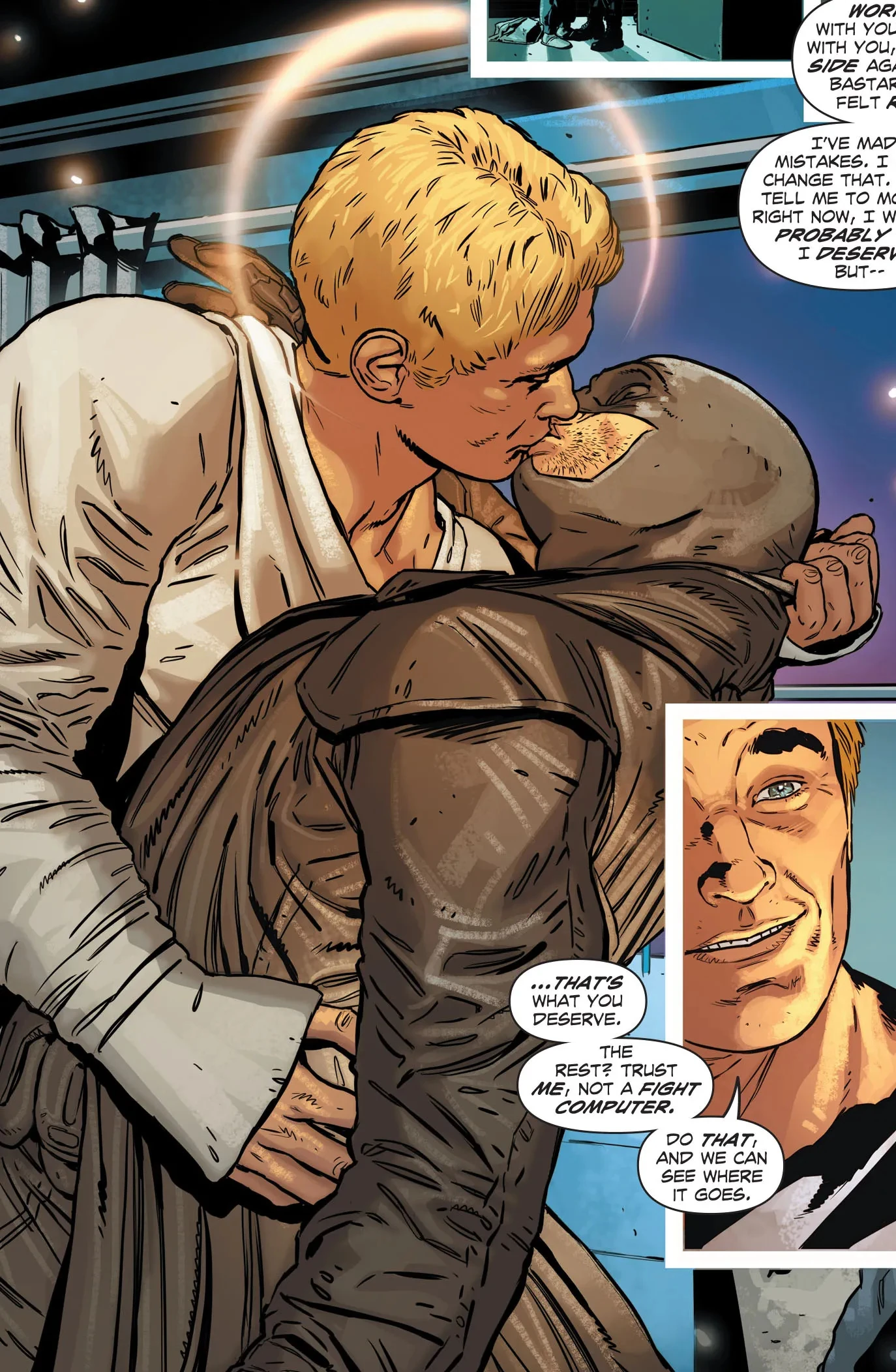 Midpollo is a somewhat rare pair within the DC Comics fandom, due to the fact that it's overshadowed by the most popular ships of the fandom. However, it managed to garner a loyal fanbase amongst queer fans since the very beginning the two of them were introduced. The two were often speculated by gay readers to be gay. Warren Ellis wrote clues into his stories but the characters’ sexual orientation wasn’t confirmed at first. The confirmation started in earnest in a scene from issue #7 that shows Apollo collapsing in a battle with the forces of Sliding Albion, an alternate Earth which has fused its technology, culture and politics with an alien race. Midnighter cradles Apollo close to his chest as if it might be their last moment together.