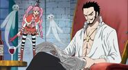 Despite his stoic ways, and the fact he was somewhat confused by her tears when he told her to remain safe, he does seem to genuinely care for her. This is evident when he explains that it is best for her safety to leave, as his status as a warlord has been stripped from him, making him a target of the Marines and the World Government. By the time the Marines arrived at his island, there was no sign of Perona there.