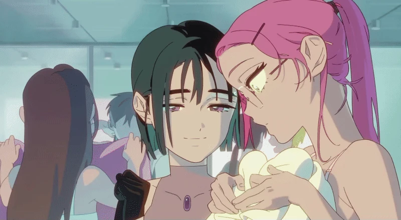 There are scenes where it shows Mizi and Sua before they competed in Alien Stage where they were picking their outfits. Sua was wearing Mizi's outfit while Mizi was holding Sua's. Mizi places the dress on Sua to see how it would look on her and Sua blushes due to the lack of clothing Mizi is wearing. We see another scene back in Anakt Garden where Sua and Mizi were singing together with the others.
