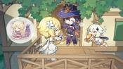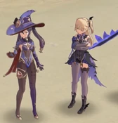 In Charity and Creativity, Mona and Fischl will come by the newly opened Favonian Goodies together. Fischl had insisted Mona accompany her to the festival and Mona explains to the Traveler that Fischl had come to her after having a very nice dream to seek some astrological guidance, to which Fischl interjects saying that had been nine days ago. Mona is very surprised to hear it had already been nine days as she had been too caught up in her column writing spree and lost track of time.