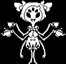 - Muffet is the only Undertale boss among the few notable characters to never appear in Deltarune in any way. This is likely because she was not designed by the team behind the game, designing her was a Kickstarter backer's reward for Michelle Czajkowski (of Ava's Demon fame). The closest thing to Muffet being referenced is in a well-hidden Easter Egg in Chapter 4, where an NPC snarks that "you might as well give money to a spider" when the party donating their money to a fountain reaches its limit.