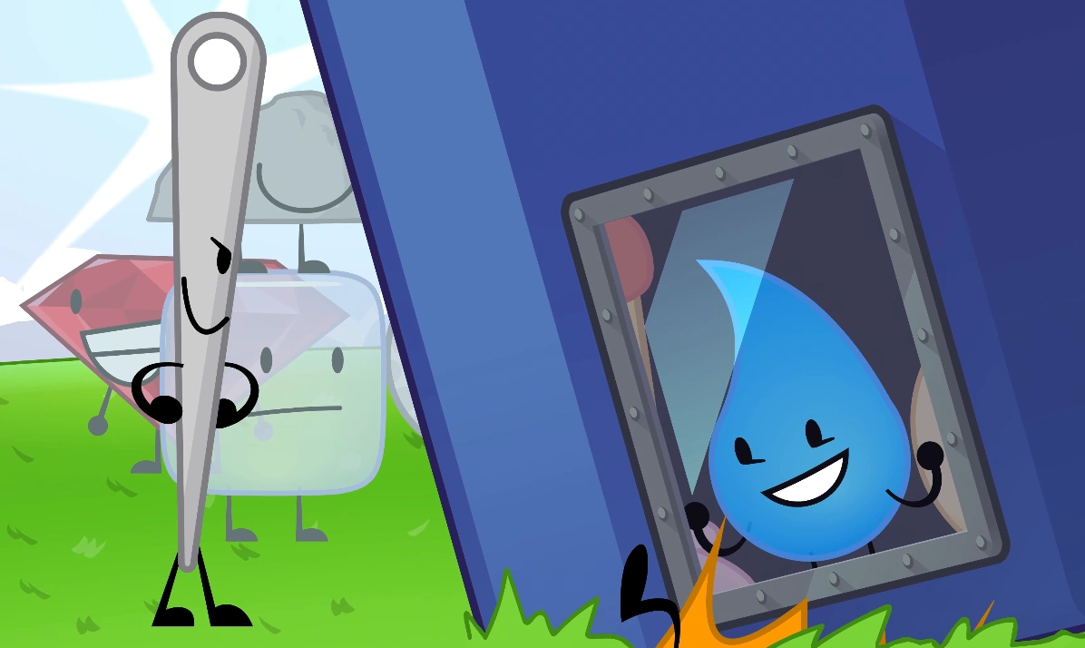 Firey calls Needle “not interesting,” prompting Needle to call out: “TD, help me get Firey!” Teardrop responds by crushing Firey while in the Locker of Losers. During Teardrop’s part of the challenge, Teardrop is seen happily staring at Needle when she is angry with Tennis Ball, later Needle crushes the bugs, winning the prize. Needle asks Teardrop what her prize is, Teardrop then boots Needle forward, giving her a small “goodbye”, waving and following along.