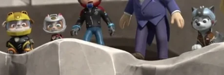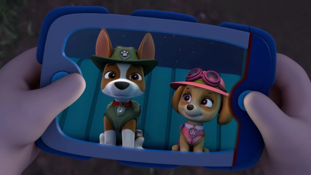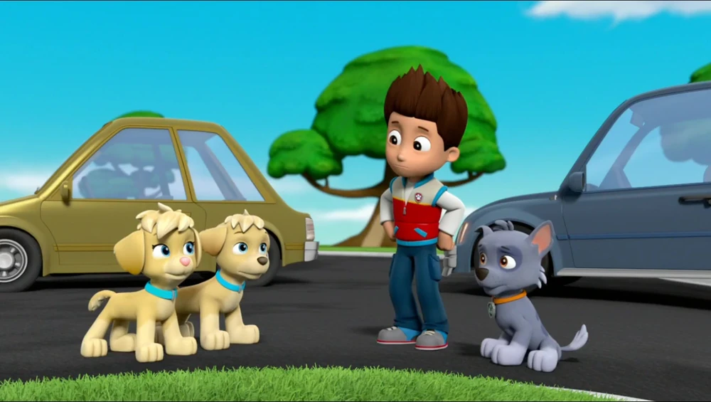 In "Rescue Wheels: Pups vs. the Monster Mayor", Zuma and Roxi stand next to each other, and exchange looks and smiles after they and the other pups have saved the day.