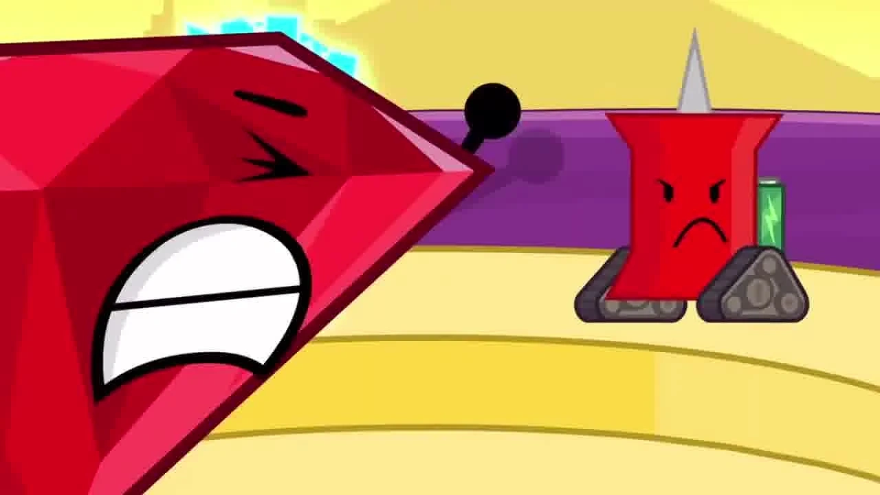 In "Launch Party", Pin asks Ruby what she is doing on the Pristine Plains, and Ruby says she, Fries, Gelatin, Ice Cube, and Pencil went on a nice little stroll, and she ended up here. Ruby asks if she can have Pin and Book's baskets, and Pin is confused that Ruby actually wants them. Later, Pin kicks the pile Ruby is stuck in away, freeing her. Ruby cheers, only to realize it was Pin, so she runs away in disgust. Pin says Ruby could've said thanks.