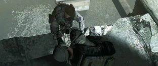 From Piers’ position, he’s able to shoot the tank allowing Chris and Finn to go forward. With the tank successfully down, Finn and the wounded solider are still below them. With more on-coming enemies, Finn insists that the wounded can’t walk so for Chris and Piers to go on without him. Chris and Piers hold off more enemies for their “no man left behind” policy. Piers demands that he get up there, even if it means “dragging” the wounded. When Finn makes it to them with the wounded, Chris orders him to blow the bridge. With the bridge blown and the enemies for that time down, Alpha Teams heads for City Hall.