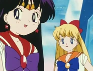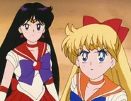 Three Lights then appear and call Minako out on lying, that she already has a person that she's sworn to live and die for. Minako turns serious again and says they're right. Rei understands that she's talking about Usagi, and agrees. She says that's why they have no need for menfolk, and asks if they have a problem with that. They say that convinces them that the two are true Sailor Guardians. Rei and Minako transform into Sailor Mars and Sailor Venus and manage to get Three Lights to transform to prove they're Sailor Guardians like them. However, the Lights run away, and Mars and Venus are attacked by Sailor Lead Crow shortly after. Sailor Moon arrives in time to kill her, but Galaxia arrives and steals both of their Sailor Crystals at the same time.
