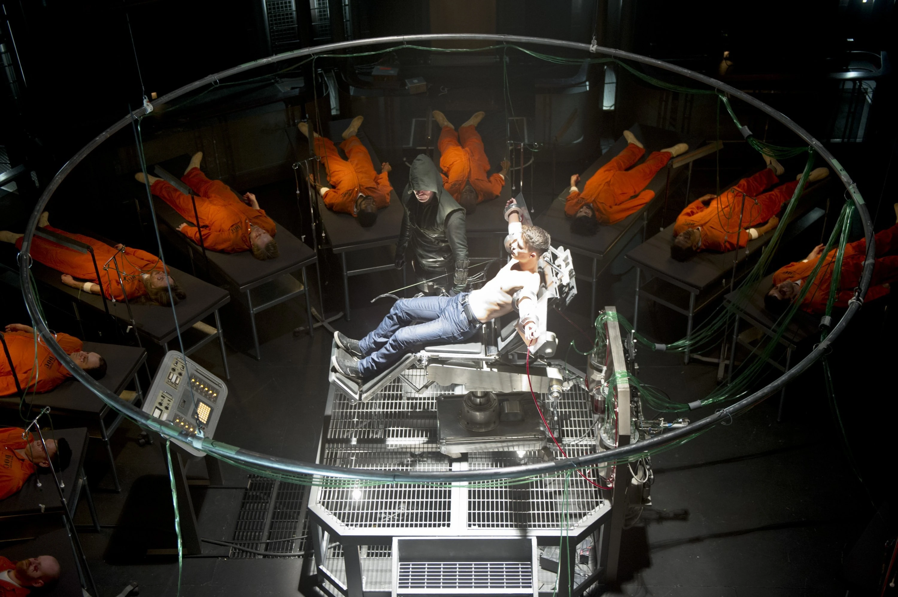 Oliver's worried about Roy as the team went to Roy's apartment which has been cleared, but they have no time presently to investigate. When Oliver goes to shut down Slade's transfusion he discovers that Slade isn't using himself as the source — Slade abducted Roy. When the opportunity arises, Oliver swiftly grabs Roy and crane-lifts them both out through the ceiling with his bow.[12] Oliver and Diggle bring Roy to the Foundry, but he awakes later and leaves. Roy runs into Sin who tries to reach him and he hits her, which has Sara on the war path. Oliver isn't ready to give up on Roy's humanity and wants them to try and track him. The team are unsure of where he'd go, but trace him to the Clock Tower downtown. Sara and Oliver try to fight him off, unsuccessfully, and Oliver is horrified as he watches Roy wound one officer, but kill another.