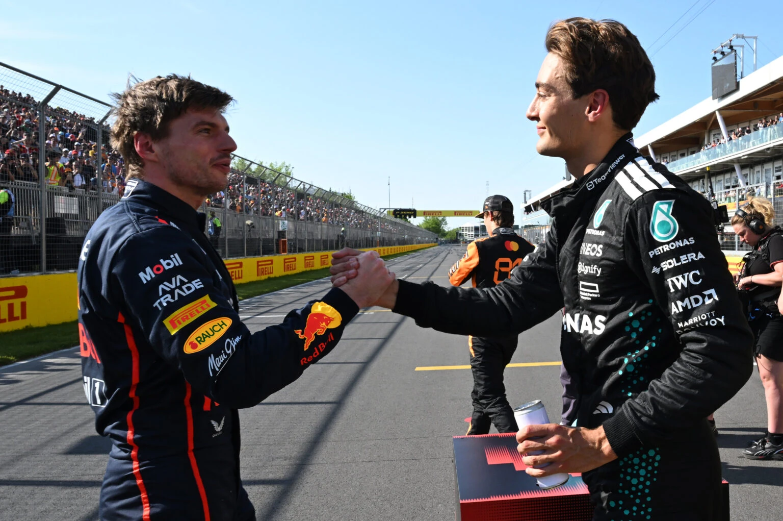 At the 2025 Canadian Grand Prix, another controversial incident occurred. Verstappen accused Russell of erratic braking, while Russell claimed that Verstappen attempted to overtake during the safety car. Red Bull lodged protests but the stewards ultimately rejected them, accepting Russell's explanation that braking was necessary. This sparked a heated radio exchange between the two teams, with Red Bull deciding to pursue the matter further by filing a protest in an attempt to strip Russell of his victory. The protests were ultimately dismissed.