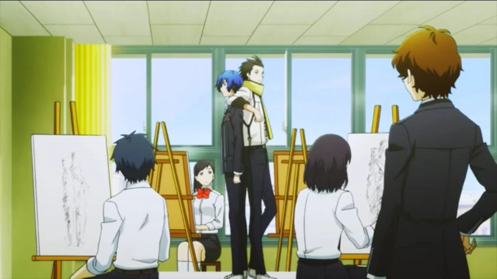 The two spend alot more time together than in the game, such as Ryoji forming a "Helpers Club", where him and Makoto do tasks for other students for a fee. Ryoji holds Makoto's hand while going around the school, yelling how they'll be helping anyone who needs it, which catches Aigis' attention and starts stalking them. They help one of Makoto's friends, Fuuka, reconcile with her best friend, as well as pose together for the artist's club.