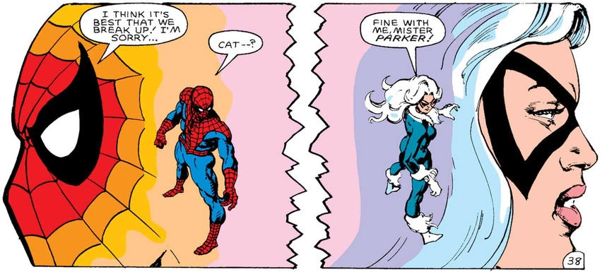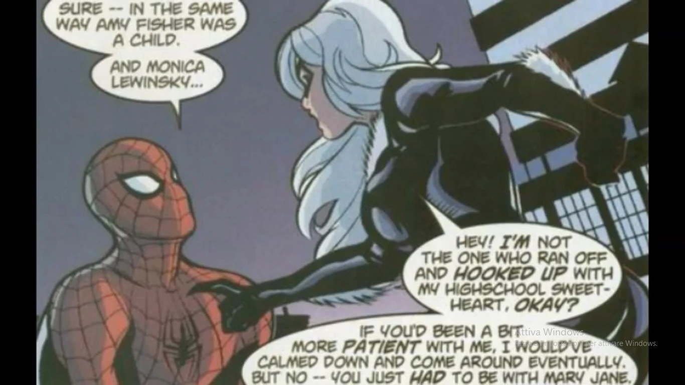 In reality this does not depend on Peter so much, but on the fact that years ago Felicia had been raped by her boyfriend Ryan, in whom she placed total trust; that brought her no longer trusts the men and see that under the mask the spider is any one upset her. Nevertheless years later she will admit that the fact that he trusted her, to the point of telling her who he really was helped her to return to trust. Obviously Peter does not know it even if the passion between the two remains intense and mutual in him will always remain the doubt that Felicia is infatuated only with the Spider-Man mask.