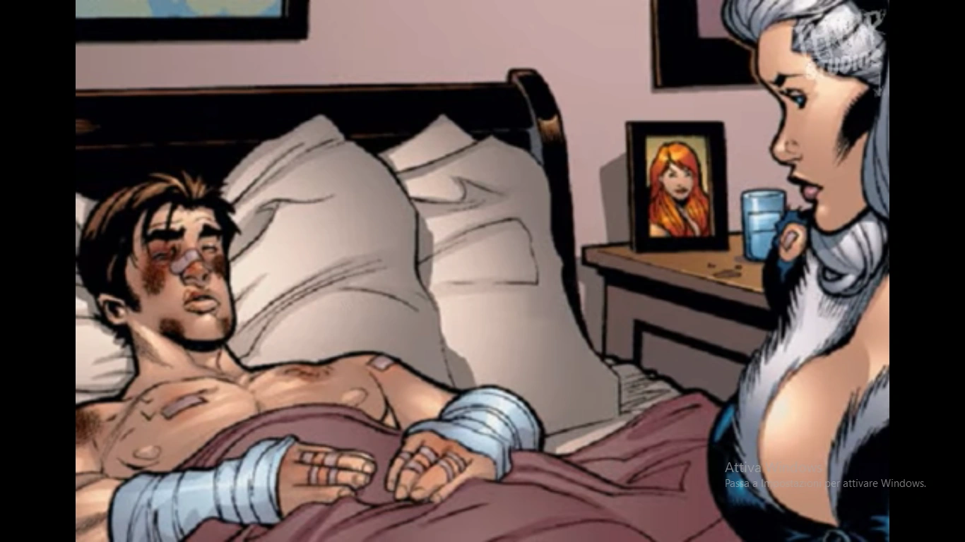 Some time later, Peter is poisoned by some radiation after a fight with the U-Foes and ends up in a coma. Felicia visits him in the hospital, very worried about him , whispering to him to go back to her. Peter seems to hear her and moves. At that moment MJ enters (she and Peter are back together) and Felicia embarrassed tries to leave but MJ makes her stay telling her that she only cares for Peter to move, not for who does and the albina replies that for her it is the same. It must be said that MJ was often at Peter's side, like Aunt May but the boy reacted only to Felicia's presence.