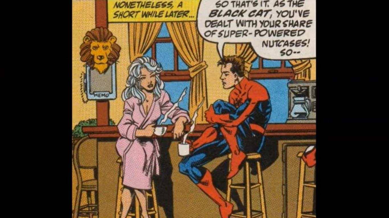 Unfortunately Peter’s fears are confirmed: when he takes the Black Cat to his apartment, she is shocked by the fact that it is a modest apartment in the suburbs and not a palace or a secret base. Spidey explains to her that he has become a superhero out of a sense of duty, not for money, fame or the search for the thrill and unmasks himself in front of her revealing her identity as Peter Parker. Seeing the man behind the mask, the Black Cat is horrified and backs up horrified pleading with Peter to put his mask back on.