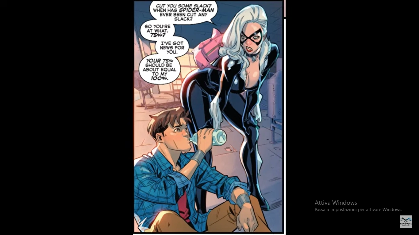The spider then goes to visit the cat devotedly every day. Certainly Peter feels very guilty about what happened to her, given that when during a fight with the vulture, he fails to prevent him from escaping with a hostage a lieutenant gives him good for nothing for not even being able to protect his girlfriend, the Black Cat we miss him just attack him.