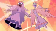Much like the first season episode they both first appeared in together, Emily and Peter don't interact with each other much during the second episode of season two. With it opening at the trial they attend, a month after Sir Pentious arrived into Heaven, as Sera believes he forced his way in. St. Peter mostly remained quite during the first part of it, while Emily wasted no time to speak out her thoughts. On the extermination Sera had kept secret from all of Heaven and that Pentious is a redeemed soul, despite Sera denying the later. After St. Peter swore upon the Speaker that he do not let Pentious path through their gates, Emily quickly chimes in to prove his claim as she already knew the truth. From being an eye witness to Pentious ascending into Heaven. Thankfully the Speaker of God helps the other angels in the room to see that Pentious's sacrifice for his friends had him atone for the sin that sent him to Hell, pleasing Emily and has Peter see Pentious as a new soul in their care.