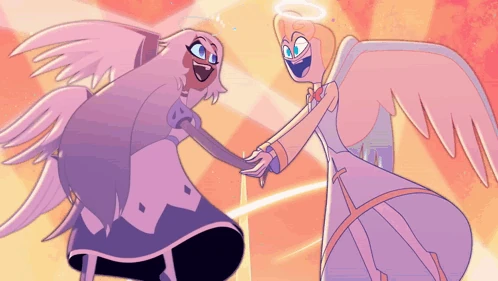 Both angels take part in the song “Welcome to Heaven,” with Peter doing most of the singing before Emily chimes in, while the two were showing Charlie and Vaggie around Heaven. Emily and Peter then sing the final parts of the song together, as they hold hands, share eye contact and then wrapped the song up with the two posing beside a few other angels.
