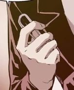 Gray stands ominously behind Oswald Yang (Yang Seonghun in the Korean version). Before Oswald could remove his PE uniform, Gray uses Stephen’s giant safety pin to clip his shirt to his shorts. As Oswald struggles with his shirt, Gray climbs onto the nearby desk and kicks Oswald in the face with his steel-toed boots. He knees him in the face and sends him to the ground. Oswald demands to know who’s attacking him and manages to break loose of the safety pin.
