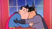 Clark flies home and gets a call from Lois, who tells him that she'll be having a date with Bruce tomorrow. Clark disapproves, and then finds a bat tracker on his cape. He looks out the window and sees Bruce on a nearby building, now knowing his secret identity as well.