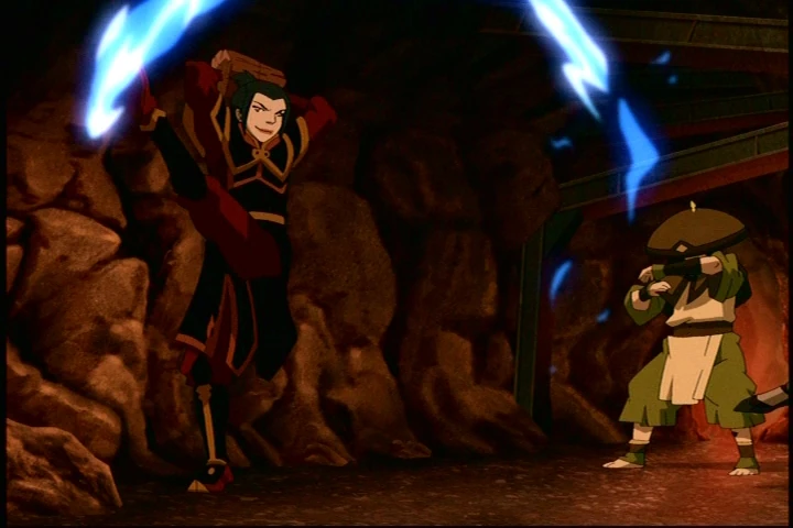 Toph and Azula were always enemies. Toph was a member of Team Avatar who was trying to help Aang bring an end to the war while Azula wanted to capture or even kill Aang. The two faced off at multiple points in time. Toph and Azula first met during a confrontation in the abandoned town of Tu Zin. Toph had actually been avoiding Azula's pursuit of Team Avatar throughout the night before until she briefly ran away. She rejoined Team Avatar just in time to face Azula. The princess was outnumbered and shot a bolt of lightning at Uncle Iroh before escaping.